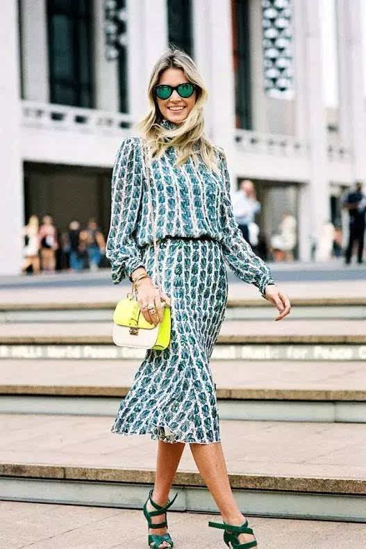 或者學(xué)學(xué)鐘小姐的學(xué)院風(fēng),翻領(lǐng)上衣加印花裙秒回校園時代。